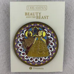 Stained Glass Window: Beauty and the Beast is a pin from the Fantasy Pin Series pin series. It is an Unlicensed (Fantasy) pin, so therefore it is not allowed to be traded in the Disney Parks.