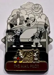 The Mail Pilot is a Limited Edition (LE) 2000 pin from the Mickey Mouse 75th Anniversary pin series. It was originally released on , 2004 and was available from Disneyland Resort .