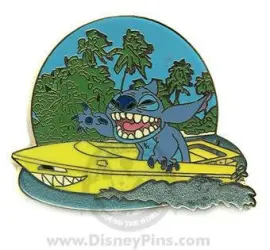 Stitch in Speedboat is a Limited Edition (LE) 500 pin from the Shore Excursions pin series. It was originally released on , 2007 and was available from Disney Cruise Line .