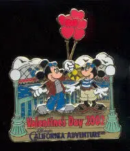 Mickey & Minnie with Heart Balloons is a Limited Edition (LE) 2500 pin from the Valentine's Day pin series. It was originally released on , 2002 and was available from Disneyland Resort .