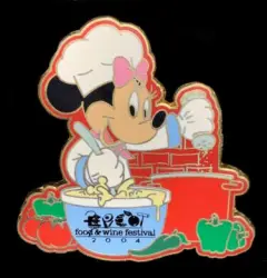 Chef Minnie is a Limited Edition (LE) 750 pin in the Epcot International Food & Wine Festival 2004 Box Set 3-pin set from the Epcot International Food & Wine Festival 2004 pin series. It was originally released on , 2004 and was available from Walt Disney World .