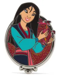Mulan and Mushu is an Open Edition pin from the 2025 Princess Glitter Portraits Collection pin series. It was originally released on , 2025 and was available from Multiple Sources (WDW, DLR, etc.).