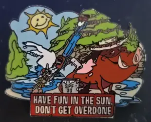 Have Fun in the Sun Don't Get Overdone Pin #7 Alternate Version is an Open Edition pin from the Wild About Safety Collection pin series. It was originally released on , 2003 and was available from Multiple Sources (WDW, DLR, etc.).