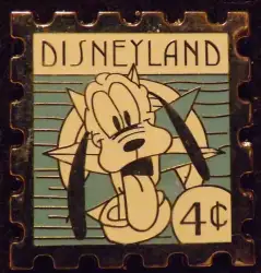 Disneyland Pluto 4¢ stamp is an Open Edition pin from the 2008 Hotel Hidden Mickey - Stamps pin series. It was originally released in June, 2008 and was available from Disneyland Resort .