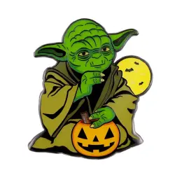 Yoda with a Pumpkin is a Limited Edition (LE) 200 pin from the Pink A La Mode (PALM) - Halloween Star Wars pin series. It was originally released on , 2025 and was available from an Officially Licensed Disney trading pin vendor (see description for more information).