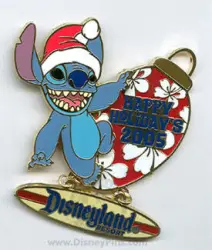 Stitch is a Limited Edition (LE) 1500 pin from the 2005 Holiday Ornament Collection pin series. It was originally released on , 2005 and was available from Disneyland Resort .