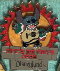 Stitch Cinco de Mayo 2005 is a Limited Edition (LE) 1000 pin from the Cinco de Mayo pin series. It was originally released 2005 and was available from Disneyland Resort .