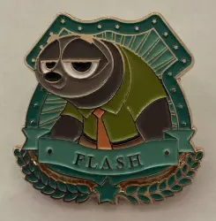 Flash is an Open Edition pin from the Zootopia Collection College Style Metal Badge Surprise Box pin series. It was originally released on , 2025 and was available from an Officially Licensed Disney trading pin vendor (see description for more information).