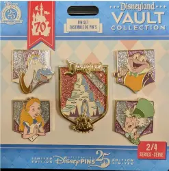 Fantasyland Set is a Limited Edition (LE) 5000 5-pin set from the Disneyland Vault Collection pin series. It was originally released on , 2025 and was available from Disneyland Resort .