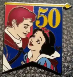Snow White and Prince is an Open Edition pin from the Cast Lanyard Series IV - 50th Banner Princess Collection pin series. It was originally released on , 2006 and was available from Disneyland Resort .