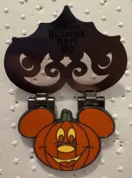 Hinged Boo to You Mickey Pumpkin is a Limited Edition (LE) 500 pin from the Mickey's Not So Scary Halloween Party (MNSSHP) 2012 pin series. It was originally released 2012 and was available from Walt Disney World .