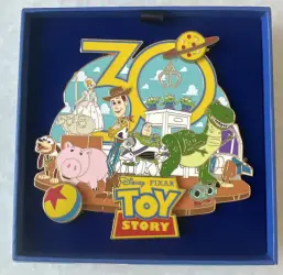 Jumbo Toy Story is a Limited Edition (LE) 450 pin from the Toy Story - 30 - Évent DLP pin series. It was originally released on , 2025 and was available from Disneyland Resort Paris .
