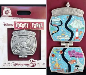 Tomorrowland is a Limited Edition (LE) 1500 pin from the Pocket Parks Quarterly Series pin series. It was originally released on , 2025 and was available from Disneyland Resort .