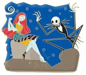 Pin features Jack Skellington and Sally from The Nightmare Before Christmas