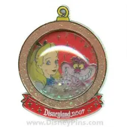 Alice & the Cheshire Cat is a Limited Edition (LE) 1000 pin from the Holiday Snow Globe 2007 pin series. It was originally released on , 2007 and was available from Disneyland Resort .