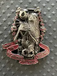 Pin features Jack Skellington and Sally from The Nightmare Before Christmas
