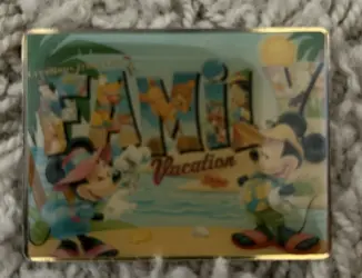 Greetings From Our Family Vacation is an Open Edition pin. It was available from Disney Store US .