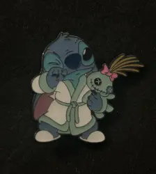 Stitch In A Robe Holding Scrump is a pin in the Stitch & Leroy Enamel Pin Set 2-pin set from the Hot Topic - Lilo & Stitch pin series. It was originally released on , 2025 and was available from Loungefly .