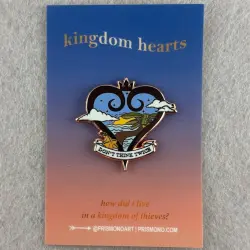 Kingdom Hearts: Don’t think twice is a Limited Edition (LE) pin from the Fantasy Pin Series pin series. It is an Unlicensed (Fantasy) pin, so therefore it is not allowed to be traded in the Disney Parks.