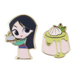 Mulan & Flan is a Limited Edition (LE) 300 pin from the Pink A La Mode (PALM) - Disney Mini Micro Mystery - Princess Royal Treats pin series. It was originally released on , 2025 and was available from an Officially Licensed Disney trading pin vendor (see description for more information).
