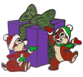 Chip And Dale with Purple Gift is a Limited Edition (LE) 1000 pin from the Countdown to Christmas - Advent Calendar Collector's Set pin series. It was originally released on , 2009 and was available from Disneyland Resort .