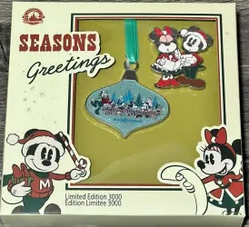 Ornament & Pin Set is a Limited Edition (LE) 3000 pin from the Seasons Greetings pin series. It was originally released on , 2022 and was available from Disney Store US .