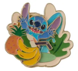 Stitch and Fruit is an Open Edition pin from the Miniso - Stitch Hawaii Metal Badge Collection pin series. It was originally released on , 2025 and was available from an Officially Licensed Disney trading pin vendor (see description for more information).