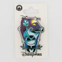 Pin features Jack Skellington and Sally from The Nightmare Before Christmas
