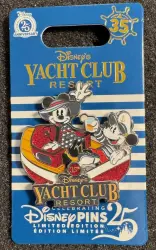 Mickey & Minnie 35th Yacht Club Anniversary is a Limited Edition (LE) 2000 pin from the Disney's Yacht Club Resort pin series. It was originally released on , 2025 and was available from Walt Disney World .
