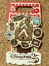 Gingerbread Logo is a Limited Release pin from the Gingerbread House Collection 2025 pin series. It was originally released on , 2025 and was available from Multiple Sources (WDW, DLR, etc.).