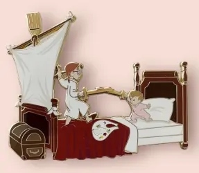 Peter Pan - Nursery Games is a pin from the Rose and Wren Pins pin series. It is an Unlicensed (Fantasy) pin, so therefore it is not allowed to be traded in the Disney Parks.