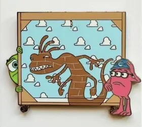 Pin features Mike Wazowski and Randall from Monsters Inc.