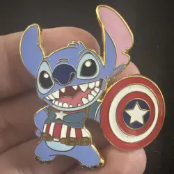 Pin features Stitch and Captain America from Lilo and Stitch