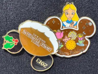 Grand Floridian - Alice is a Limited Edition (LE) 1000 pin from the Resort Holiday Collection 2013: Ear Hats pin series. It was originally released on , 2013 and was available from Walt Disney World .