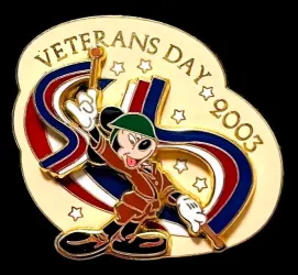 Mickey is a Limited Edition (LE) 2500 pin from the Veteran's Day Disney pin series. It was originally released 2003 and was available from Disneyland Resort .