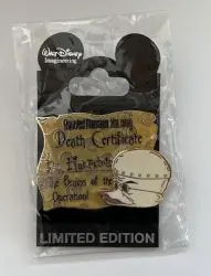 Dr. Finklestein Death Certificate is a Limited Edition (LE) 300 pin from the Haunted Mansion Holiday pin series. It was originally released on , 2009 and was available from Walt Disney Imagineering .