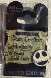 Jack Skellington Death Certificate is a Limited Edition (LE) 300 pin from the Haunted Mansion Holiday pin series. It was originally released on , 2009 and was available from Walt Disney Imagineering .