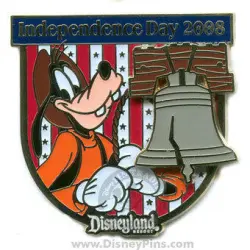 Independence Day 2008. Goofy with liberty bell is a Limited Edition (LE) 1000 pin from the 4th of July/Independence Day pin series. It was originally released 2008 and was available from Disneyland Resort .