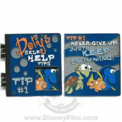 Tip #1: Never Give Up! "Just Keep Swimming!" is a pin from the Dory's Self Help Tips pin series. It was originally released on , 2007 and was available from Multiple Sources (WDW, DLR, etc.).