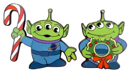 LGMs holding a Candy Cane and Eating a Cookie is an Open Edition pin from the Christmas 2025 pin series. It was originally released on , 2025 and was available from Disneyland Resort Paris .