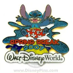 Stitch - Spring Break 2007 is a Limited Edition (LE) 2000 pin from the Spring Break pin series. It was originally released 2007 and was available from Walt Disney World .