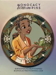 Tiana is a pin from the Monocacy Bottom Pins pin series. It was originally released 2025 and is an Unlicensed (Fantasy) pin, so therefore it is not allowed to be traded in the Disney Parks.