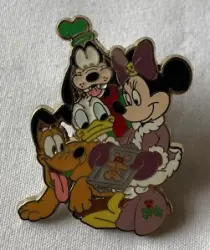 Pin features Donald Duck , Goofy , Minnie Mouse and Pluto