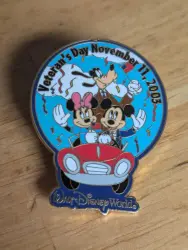Mickey, Minnie, and Goofy in a parade car is a Limited Edition (LE) 2500 pin from the Veteran's Day pin series. It was originally released on , 2003 and was available from Walt Disney World .