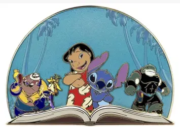 Lilo and Stitch is a Limited Edition (LE) 300 pin from the Pink A La Mode (PALM) - Once Upon a Time Storybook pin series. It was originally released on , 2025 and was available from an Officially Licensed Disney trading pin vendor (see description for more information).