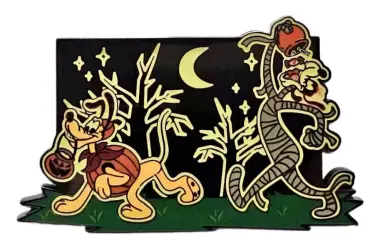 Pluto & Goofy Halloween is a Limited Edition (LE) 300 pin from the Disney Pins Blog (DPB) Exclusives pin series. It was originally released on , 2024 and was available from an Officially Licensed Disney trading pin vendor (see description for more information).