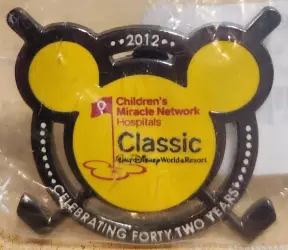 2012 - Children's Miracle Network Hospitals — Celebrating Forty Two Years is a Limited Release pin from the Walt Disney World Golf Classic pin series. It was originally released on , 2012 and was available from Walt Disney World .