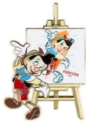 Pinocchio is a Limited Edition (LE) 200 pin from the Pink a La Mode (PALM) - Disney Ink and Paint Off the Canvas Mystery Jumbo Collection pin series. It was originally released on , 2025 and was available from an Officially Licensed Disney trading pin vendor (see description for more information).