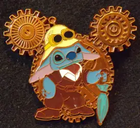 Stitch is a Limited Edition (LE) 250 pin from the Mickey Icon Steampunk Gears pin series. It was originally released on , 2010 and was available from Disney Store US .