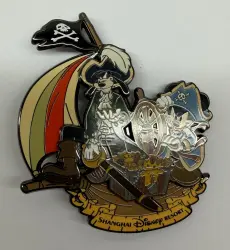 Goofy & Mickey on a Pirate Ship is a pin from the Pirates of the Caribbean: Battle for the Sunken Treasure pin series. It was available from Shanghai Disney Resort .